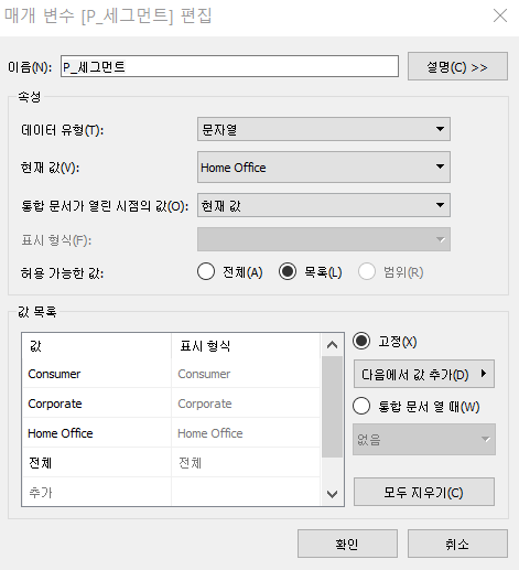 3. [P_세그먼트]라는 매개변수를 다음과 같이 만들어 주세요.