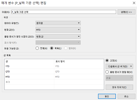 날짜의 기준을 구성하는 매개변수를 생성합니다.