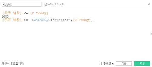 2) 오늘까지 누적된 이번 분기의 수익 -> QTD 이용