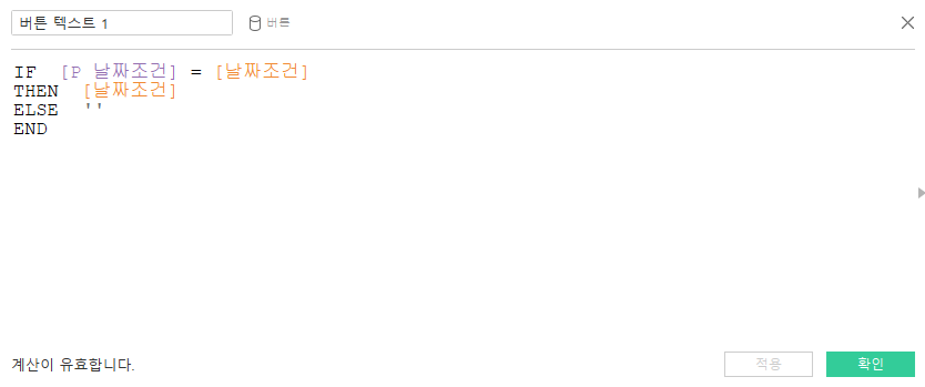 버튼 시트에서 [버튼]의 값을 선택(클릭)을 하면 [P_날짜조건]의 매개 변수를 변경한다는 의미입니다.