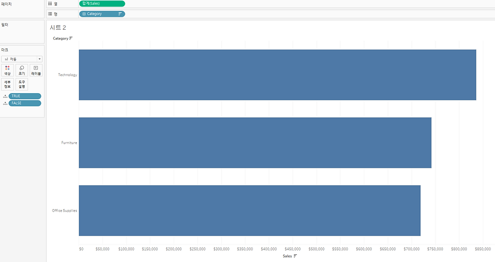 열에 Sales의 합계, 행에 Category를 넣어주었습니다.